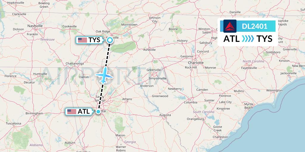 DL2401 Flight Status Delta Air Lines Atlanta to Knoxville (DAL2401)