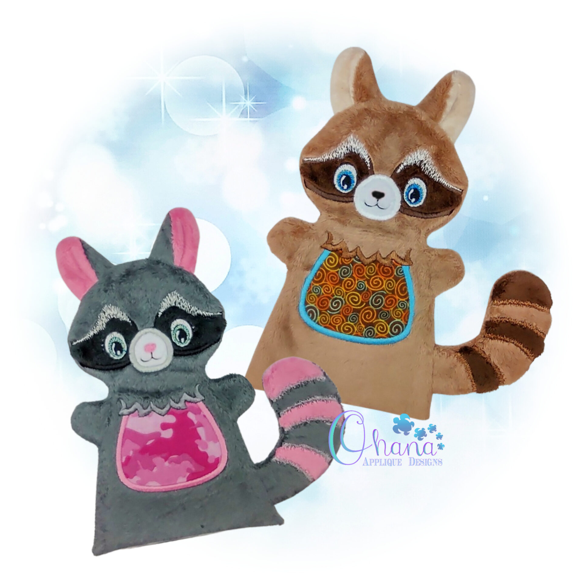 Raccoon Hand Puppet Embroidery Design Ohana Applique Designs