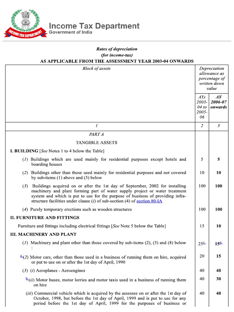 Tax Department Depreciation Rates PDF Taxes Money