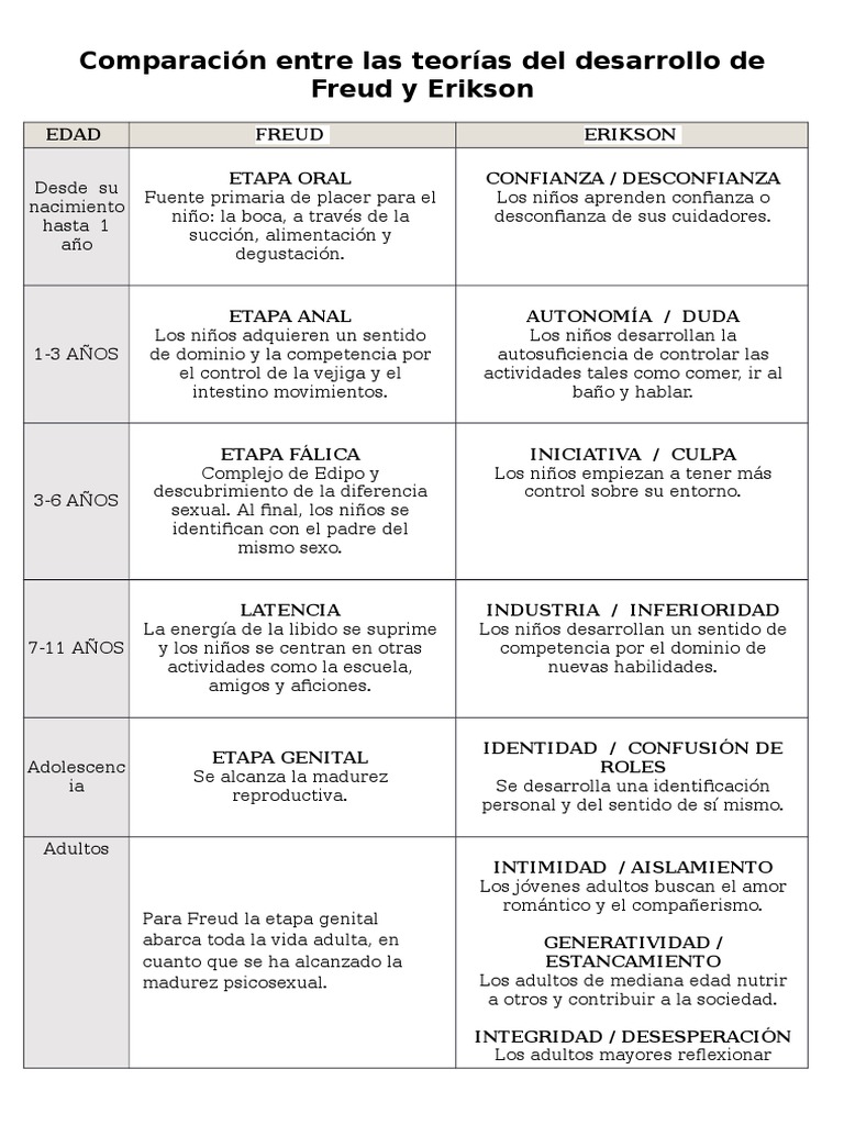 Comparacion Freud Erikson Adultos Sigmund Freud Sigmund Freud Jean Piaget And Erik Erikson Erikson’s theory (1958, 1963) was impacted by the work of psychoanalyst sigmund. Like freud and erikson, piaget thought development unfolds in a series of stages approximately associated with age ranges. Some developmental theories focus on the formation of a particular quality, such as piaget’s theory of cognitive development. Several famous psychologists, including sigmund freud,. He proposed a theory of cognitive. Sigmund Freud Jean Piaget And Erik Erikson.