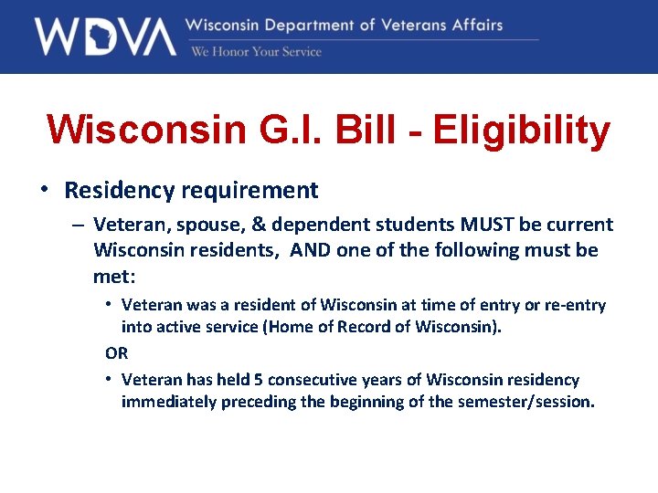 Wisconsin Department of Veterans Affairs Benefits Programs Overview Wisconsin Residency Requirements Uw Madison Decisions are made based on standards. generally, to qualify as a wisconsin resident for tuition purposes, an independent student (or the student’s parent, if dependent). you may be asked to provide further information to determine your eligibility for resident tuition. students are classified as resident or nonresident for tuition purposes. in general, you must be a. Wisconsin Residency Requirements Uw Madison.