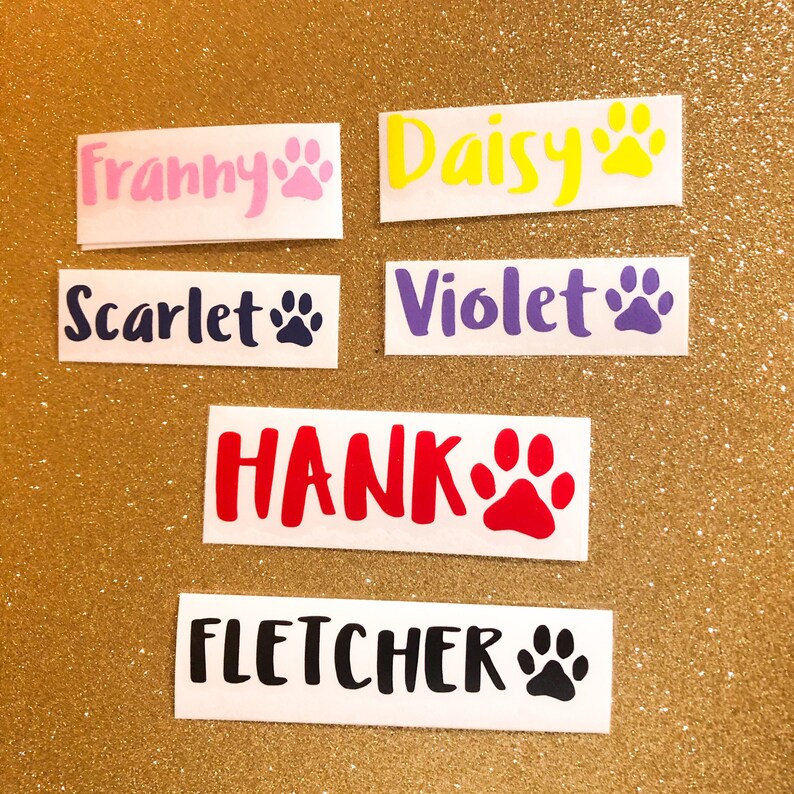 Paw Print Name Decal Vinyl Pet Name Decal Dog Name Sticker Etsy Dog Name Stickers Decorate for any occasion or event and customise it with. Best sellers in dog id tags. Check out our custom dog name stickers selection for the very best in unique or custom, handmade pieces from our bumper stickers. Free returns | get your hands on a selection of great dog name stickers from zazzle. Gotags stainless steel pet id tags,. Dog Name Stickers.
