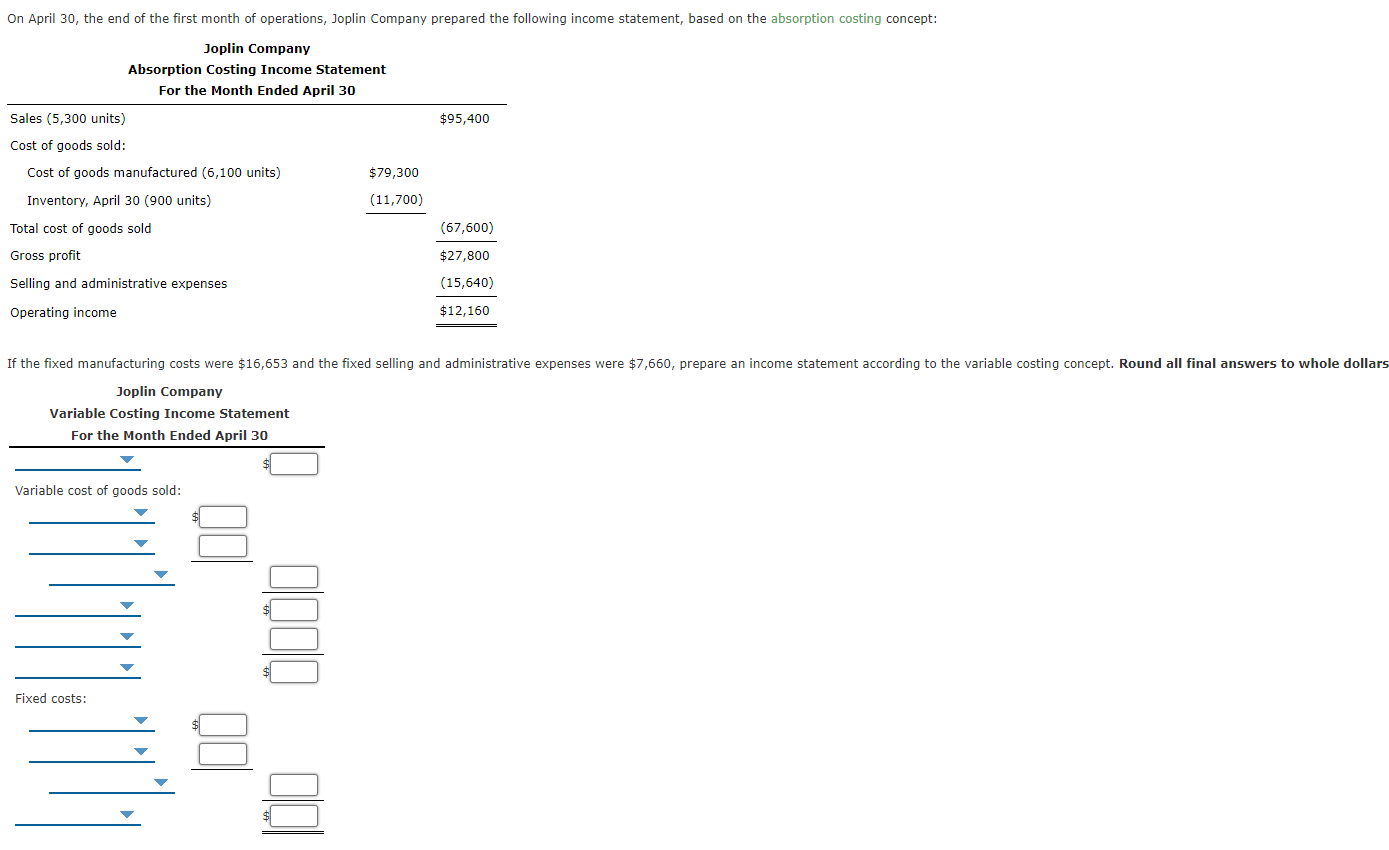 Solved Variable Costing Statement On April 30, the Variable Costs Of Goods Sold variable costs are expenses that vary in proportion to the volume of goods or services that a business produces. the cost of goods sold (cogs) is how much it costs a business to produce its goods. what is included in cost of goods sold? the variable cost of goods sold (cogs) refers to the portion of. Variable Costs Of Goods Sold.