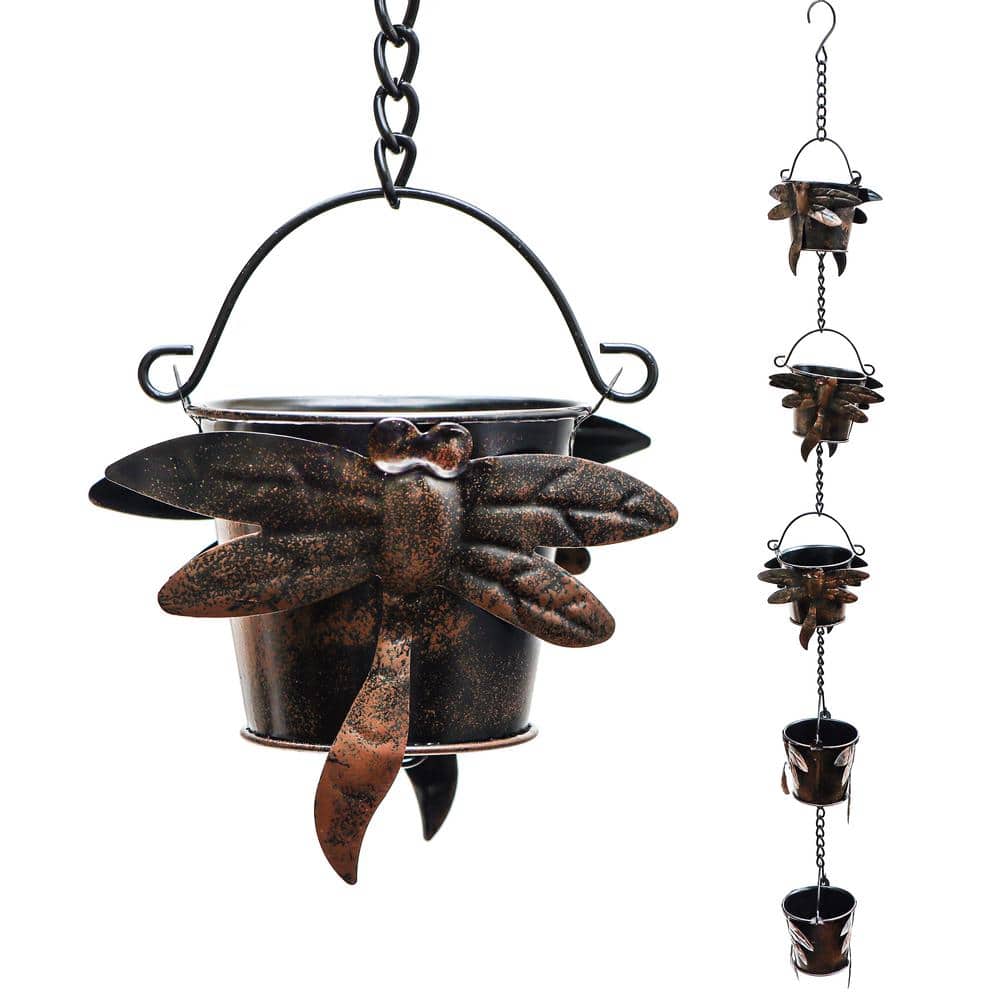 Add a dramatic look to a. With a beautifully hand tooled floral pattern in the cups, two dragonflies perch on the top edge. The chain is a beautiful copper color and is made from coated iron. By popular request of so many of our customers, pure copper dragonfly cups!. Rain chain adapter gutter installer is not included. Retrome 8.5 ft dragonfly on watering can rain chain, rain chains for gutters downspouts outside. Celebrate beautiful garden visitors while treating your home, garage, or garden shed to a wonderful accent. Transform your downspout into a mesmerizing water feature with our enchanting dragonfly metal rain chain. Enjoy listening to the rain with this 8.25' long rain chain. This beautiful piece is crafted from durable aluminum and features a series of.