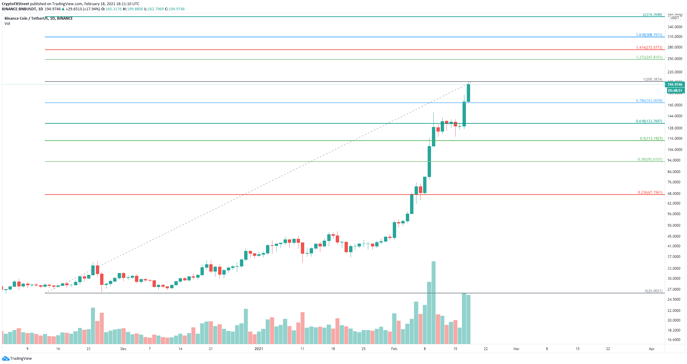BNB price reaches 200 as Binance Smart Chain hits 2 million in daily