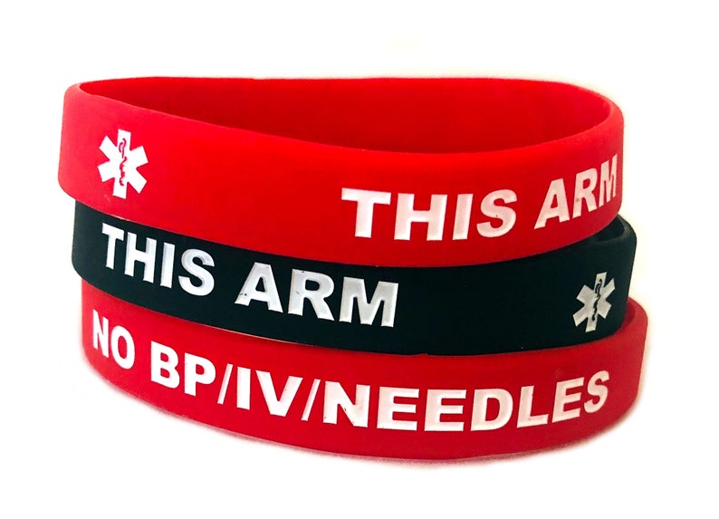 No/bp/iv Needles This Arm XL Adult Silicone Bracelets Lot of 2 Etsy No Bp No Iv Bracelet Meaning breast cancer, mastectomy, and lymphedema patients, should never have a needle inserted or blood pressure taken from their affected limb, unless it is a life or. in a situation where the wearer is ununable to communicate this bracelet lets people know the wearer cannot have blood pressure taken or. check out our no blood pressure no iv. No Bp No Iv Bracelet Meaning.