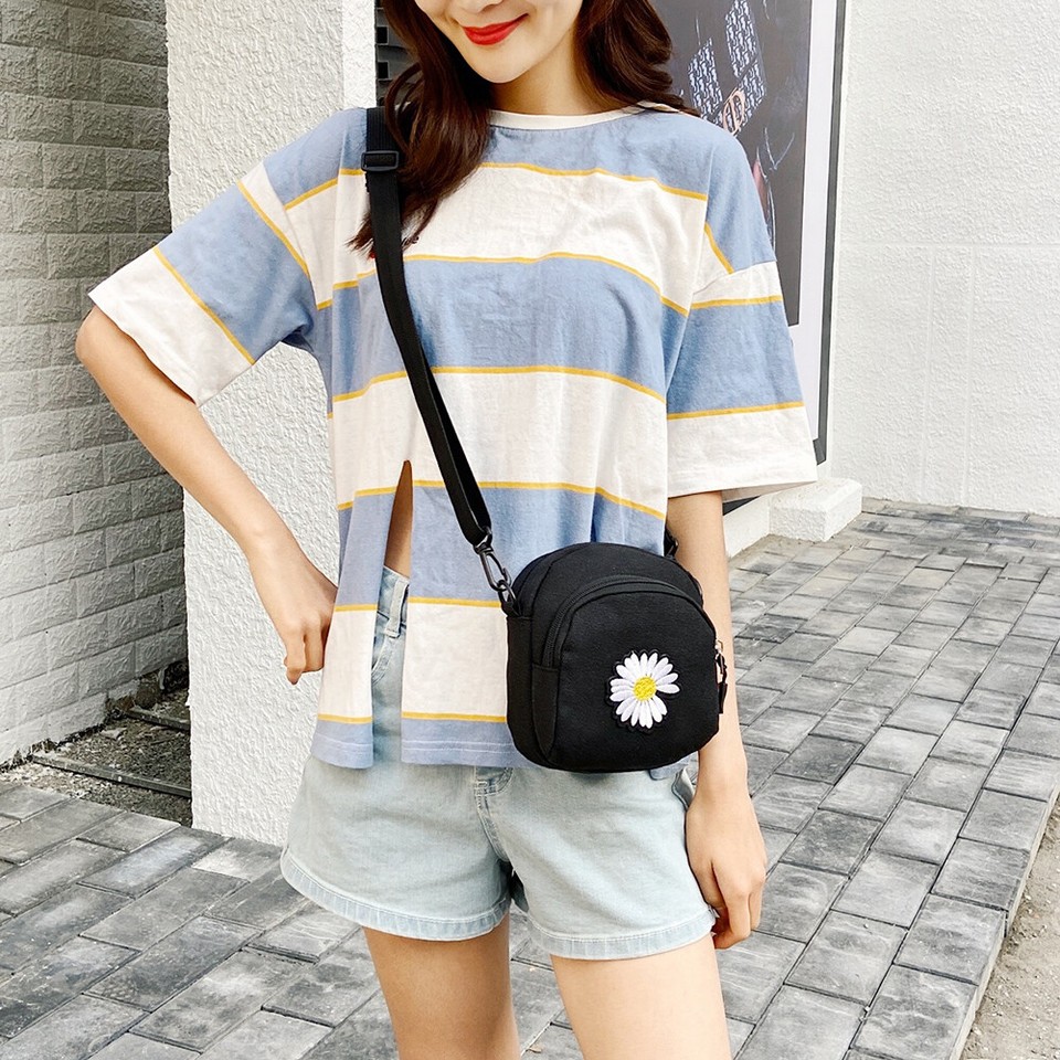 Women Daisy Flower Shoulder Bag Canvas Female Small Zipper Messenger