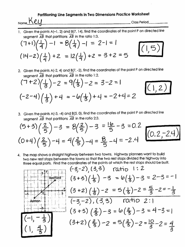 Partition A Segment Worksheet Partitioning A Segment Worksheet Pdf Answer Key Partitioning a segment means that you are going to take a line segment and break it into equal parts and then find a point that is a specific distance. Find the coordinates of point p that lies on the directed line segment from a(3, 4) to b (6,10) and partitions the segment. Partitioning a segment worksheet name_____ geometry date_____ period___. Partitioning A Segment Worksheet Pdf Answer Key.