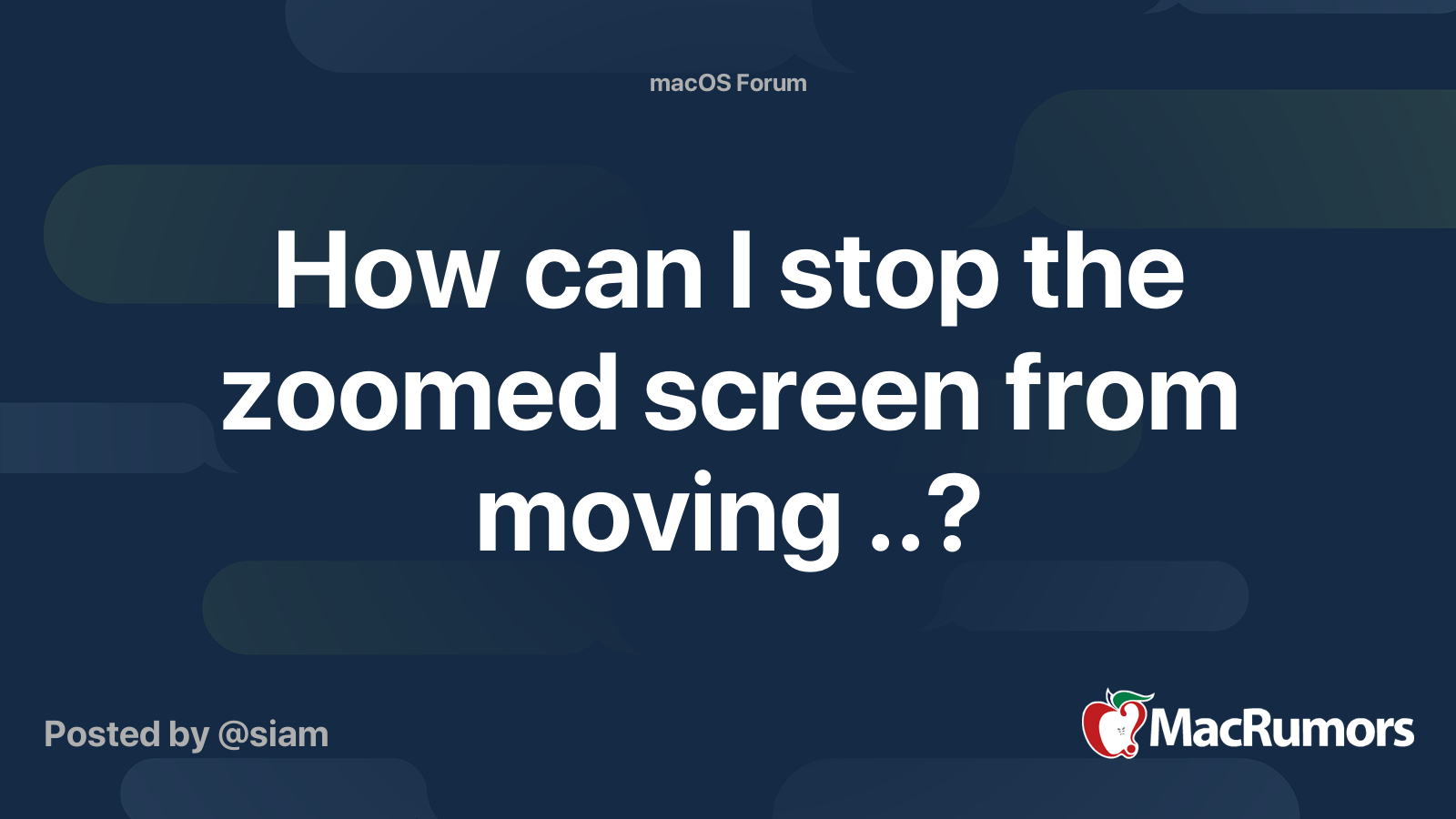 How can I stop the zoomed screen from moving ..? MacRumors Forums