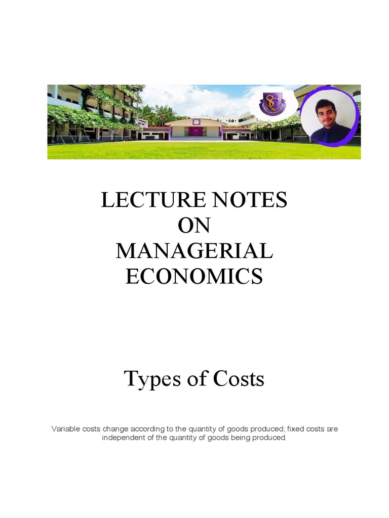 06LECTURE NOTES Types of Costs MANAGERIAL ECONOMICS PDF Cost Business Process
