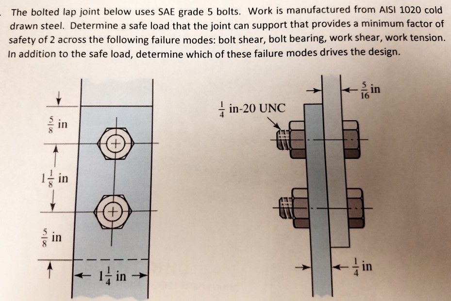 Solved The bolted lap joint below uses SAE grade 5 bolts.