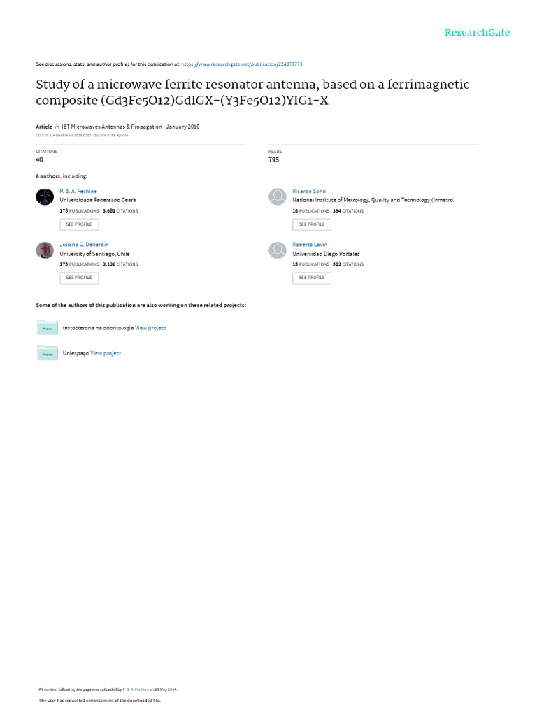 Study of A Microwave Ferrite Resonator Antenna Bas PDF Dielectric Antenna (Radio)
