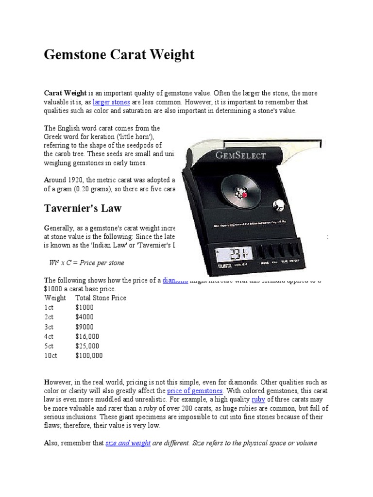 Gemstone Carat Weight PDF Gemstone Weight
