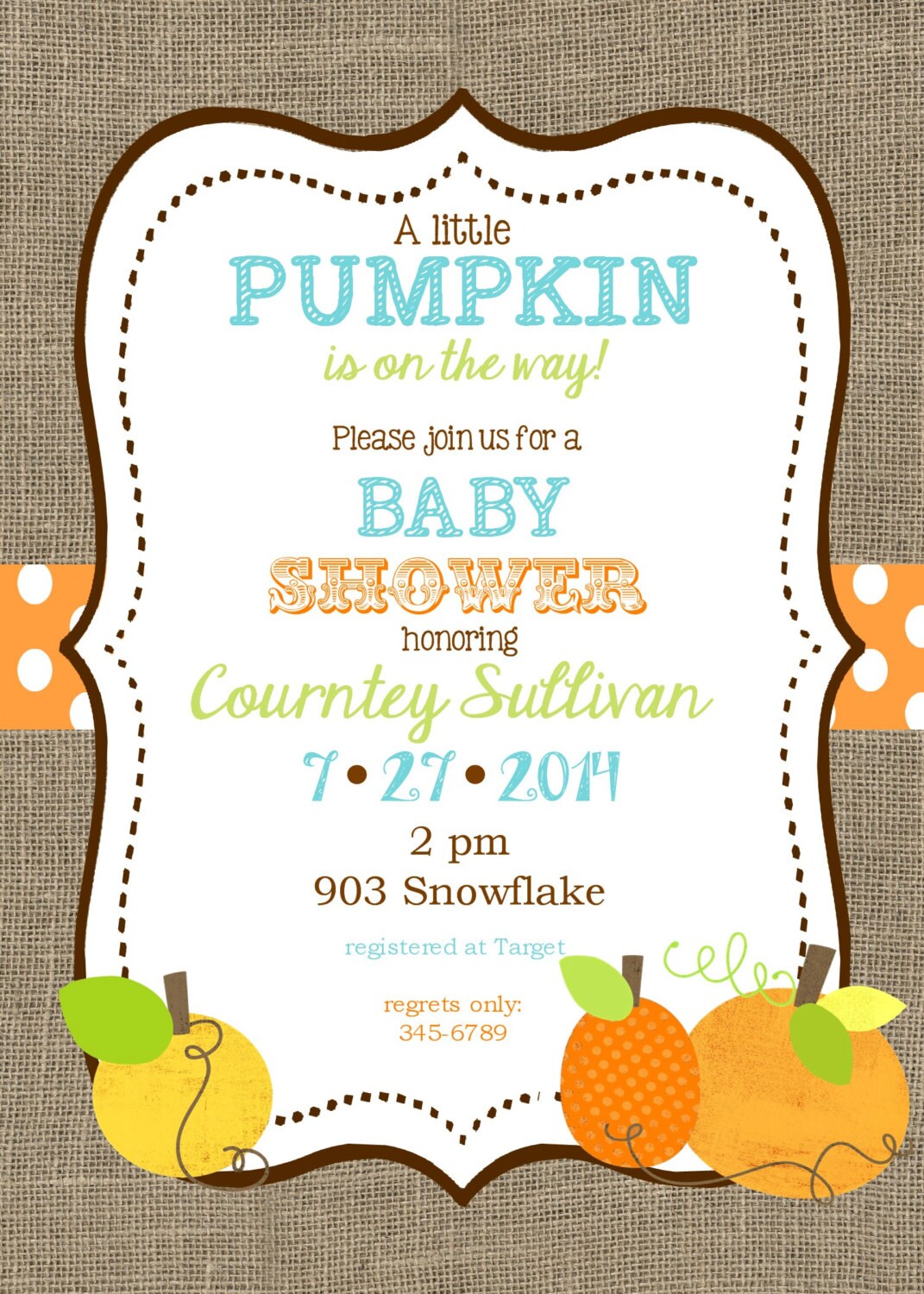 Pumpkin Baby Shower invitations printable or digital file