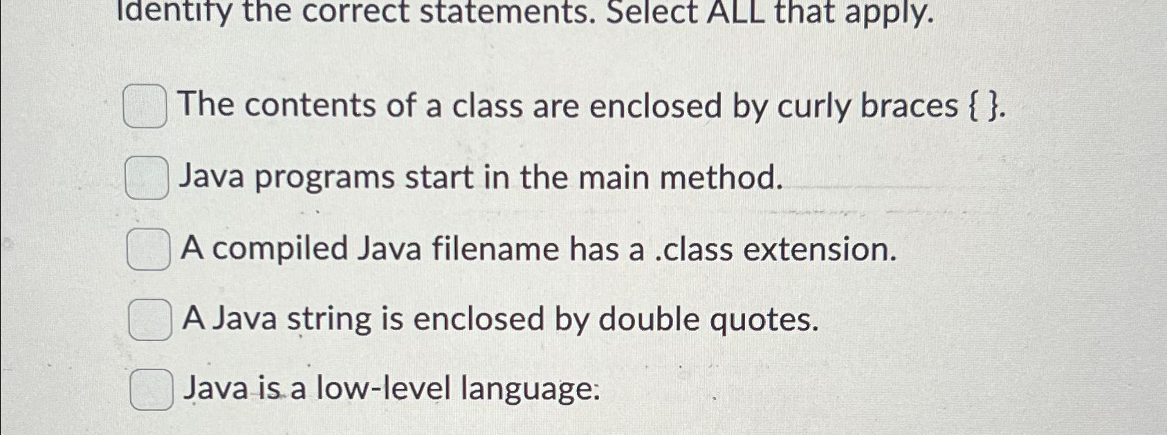 Solved Identify the correct statements. Select ALL that Curly Braces Java String There are two standard formats for. public static string concatenatewithcurlybraces(final string. balanced parentheses in java. Curly braces delimit the bodies of classes, methods, and loops. The balanced parentheses problem is one of the common programming problems that is also known. Java's string templates are more versatile, and much safer, than features in. Strs) { final stringbuilder strbuilder =. Curly Braces Java String.