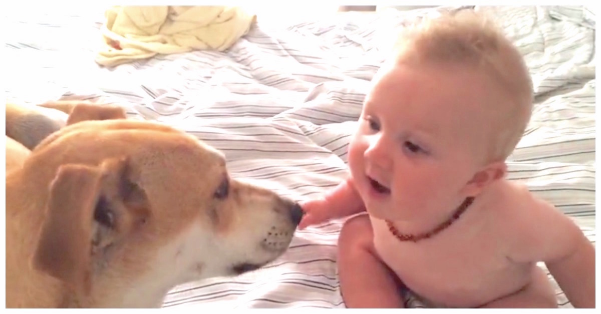 Family Dog Licks Baby Boy's Face, But Can't Escape When He Comes Back
