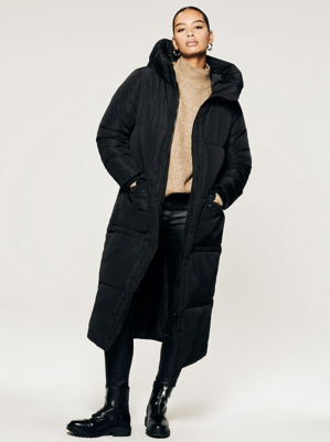 Black Padded Longline Coat Women at ASDA