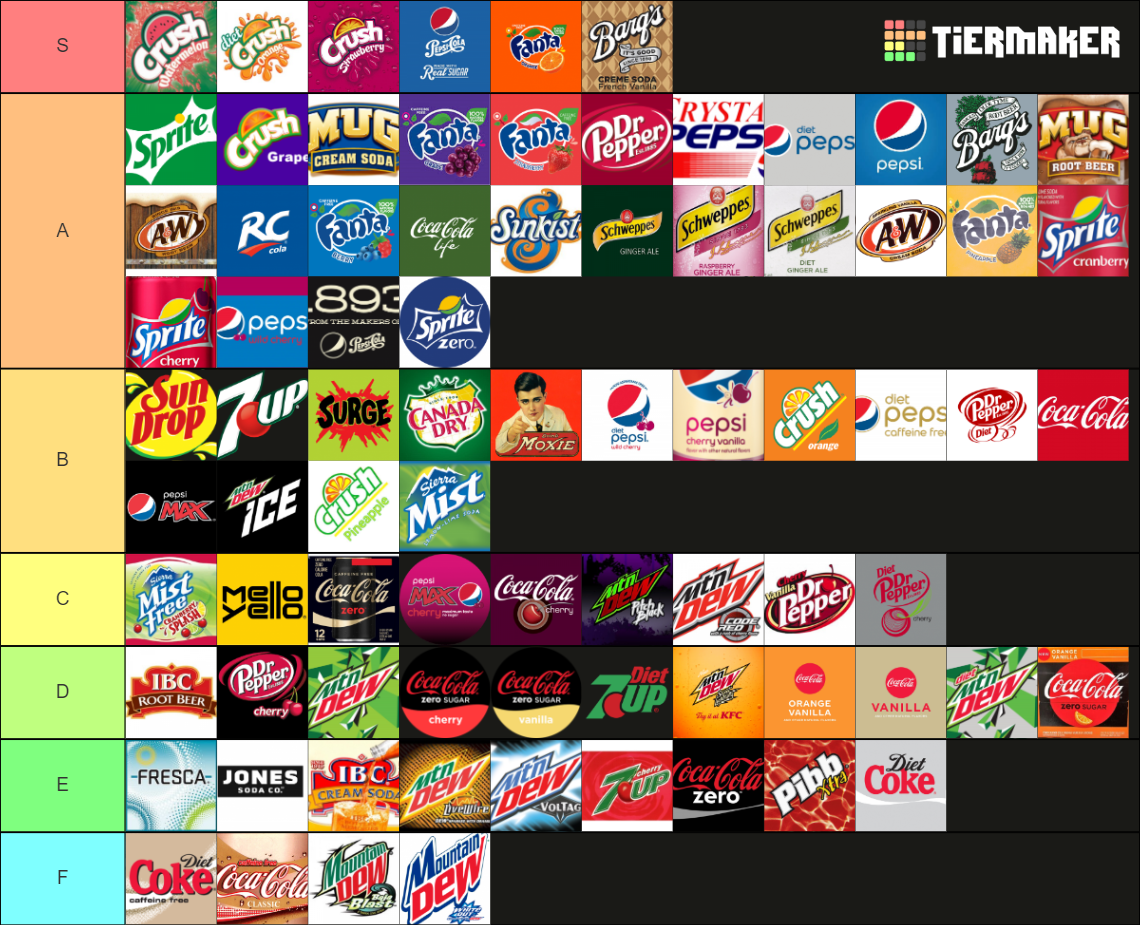 Soda Tier List Create your own ranking of sodas and carbonated beverages with this template. You can also view the. Vote on the best sodas of all time and see the rankings of 70 items based on 787.3k votes. Create your own ranking of all the widely available soda/soft drinks across the united states. Make your own soda tier list with 25 images. Soda Tier List.