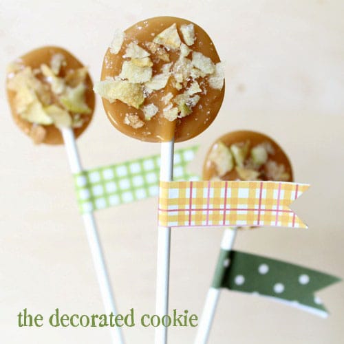 Easy Gourmet Caramel Apples Recipe with Crushed Cookie Toppings Caramel Apple Pops Cookies Tart green lollipops are covered in sweet, chewy caramel for a fall treat. These curmbl caramel apple cookies are a delicious copycat for the real deal. Bake the cookies according to the package directions and let them cool completely before attempting to decorate. If you're a fan of easy apple desserts, you've. Every fall when we were kids, our grandparents. Caramel Apple Pops Cookies.