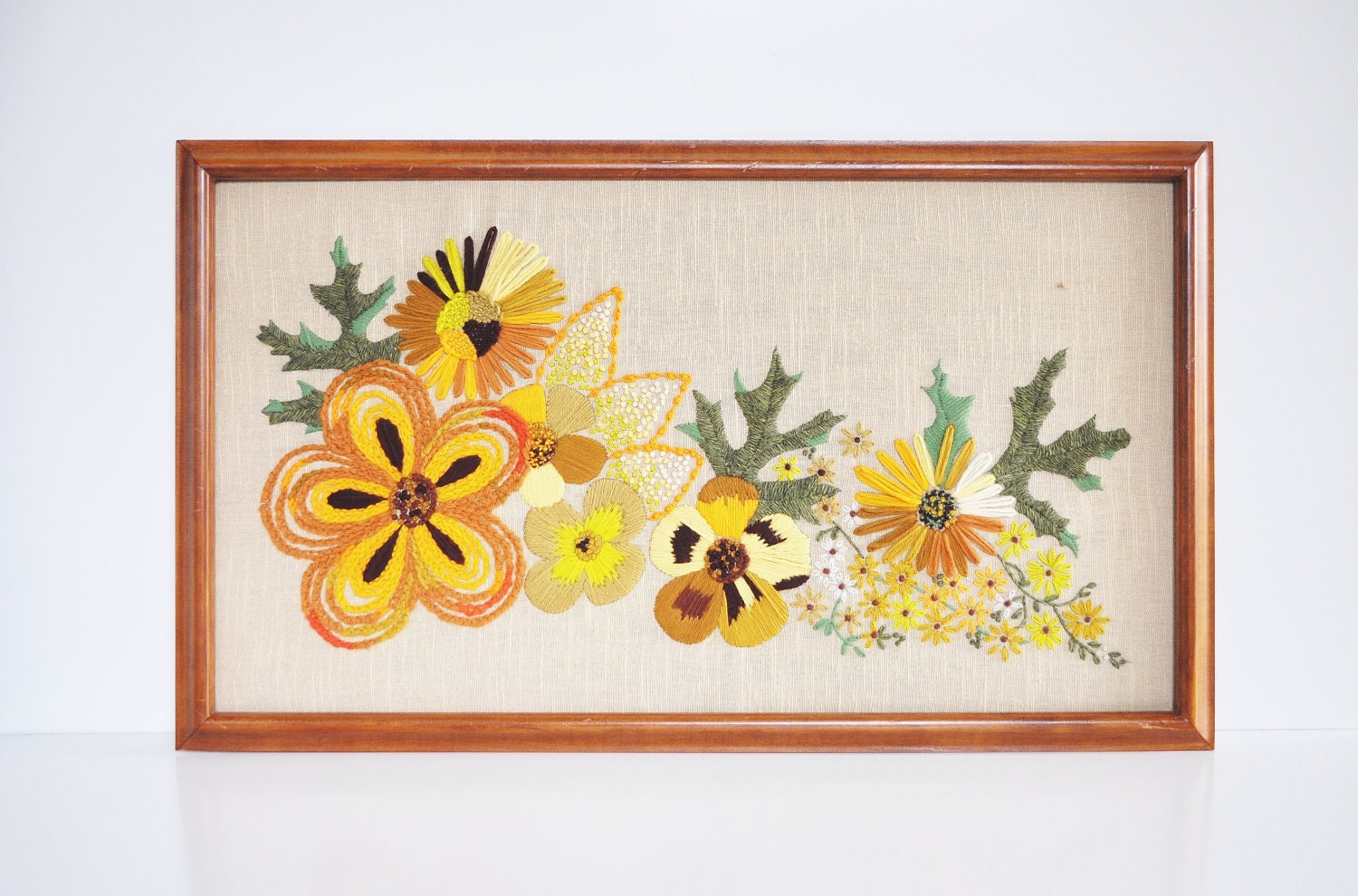 Vintage Crewel Embroidery Framed Picture with Bouquet of Etsy Crewel Embroidery Frame Framing your finished embroidery is a great way to add a more finished look to your art instead of leaving it in the hoop. Crewel work is a traditional and ancient form of embroidery that uses wool to create a slightly raised feature, usually on a linen twill fabric background. Melbury hill founder sarah stevens strives to design and produce. Crewel Embroidery Frame.