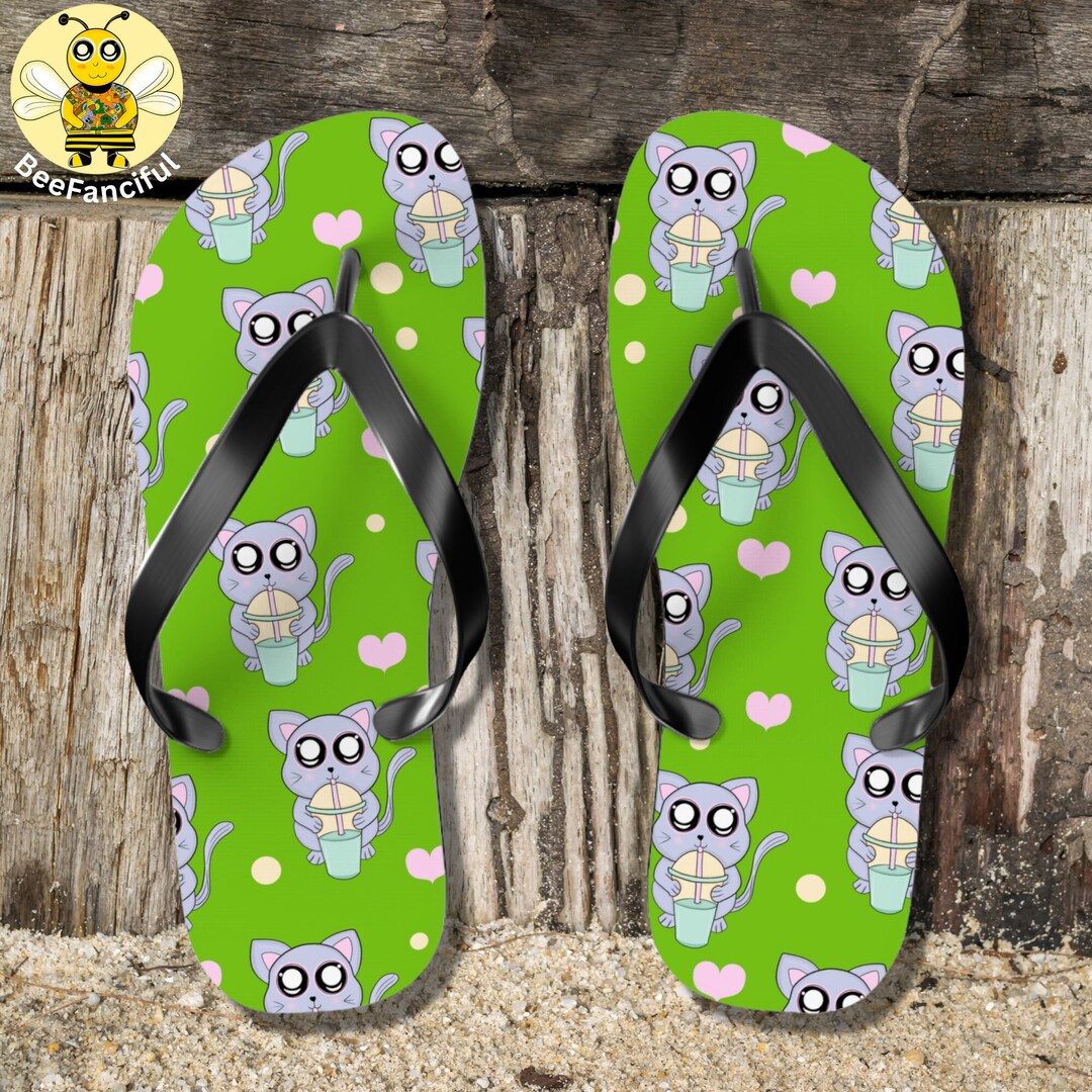 Boba Tea Flip Flops Cute Cat Sandals Kitty Flip Flops Etsy