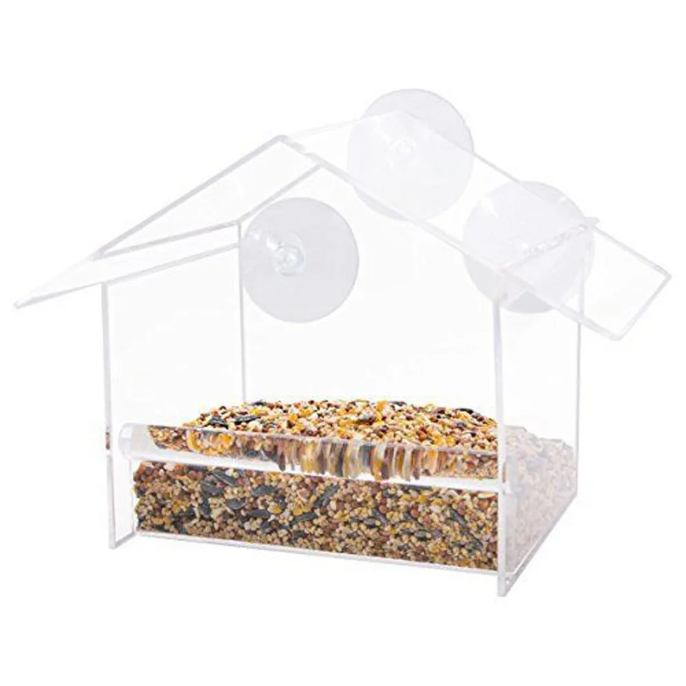 Wholesale Clear Acrylic Plastic Window Bird Feeder House With Suction,Custom Acrylic Bird Feeder