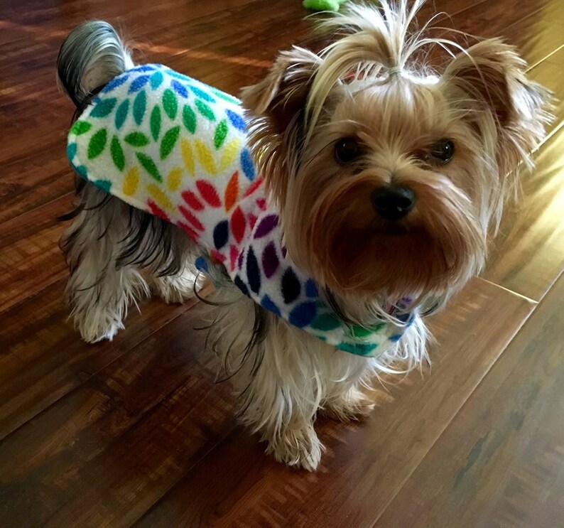 a small dog wearing a colorful shirt sitting on a black chair in a Jackets For Yorkies Check each product page for other buying options. Yorkie dog coats have a fully adjustable neck and girth, all sizes have front chest protector. Get up to 60% off! With an exterior made from the same material as some horse blankets, this coat is. All of our yorkie clothes are made to fit your. Sweaters for yorkies and yorkie bag.. Jackets For Yorkies.