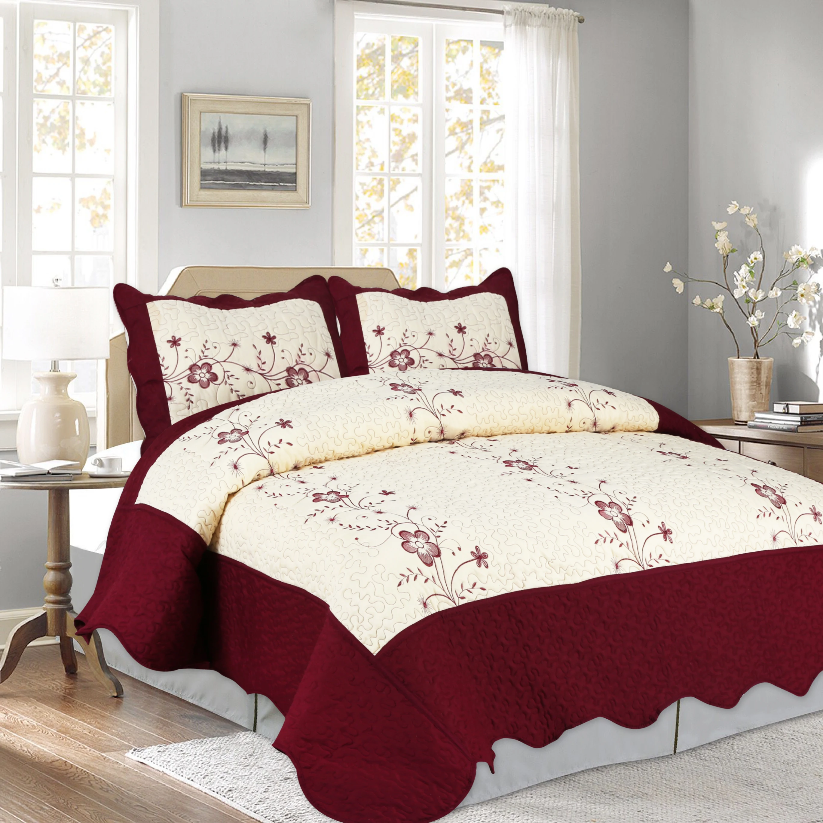 Factory Wholesale Customized Quilts Elegant Embroidery Bedspread Set