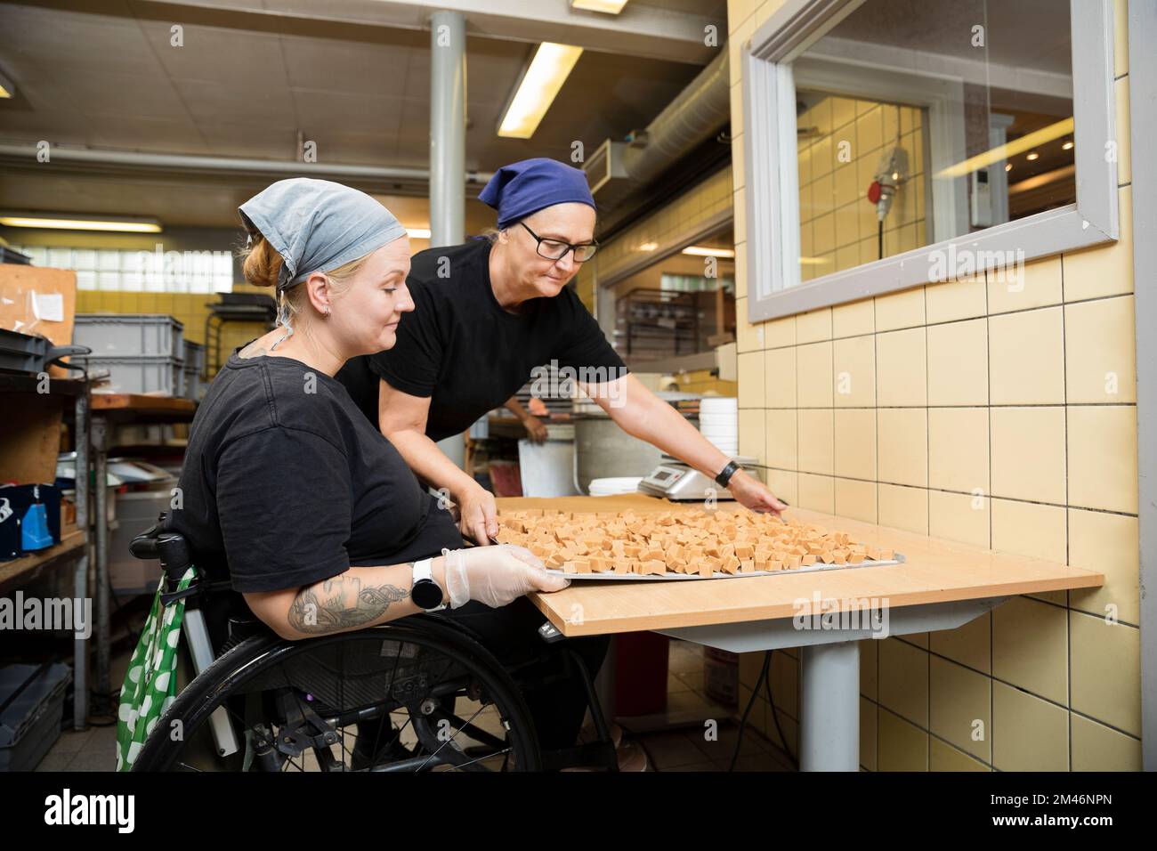 Disabled woman working in food factory Stock Photo Alamy Food Services For Disabled Découvrez les restaurants tenus par des esat parisiens et qui emploient donc des personnes en situation de handicap. L'action sociale, collective ou individuelle, vise à améliorer les conditions de viedes agents de l’état et de leurs familles ainsi qu'à les aider à faire. If you are in paris and need to eat, you have several options:. Transportation, accessibility, certified accommodations,. Food Services For Disabled.