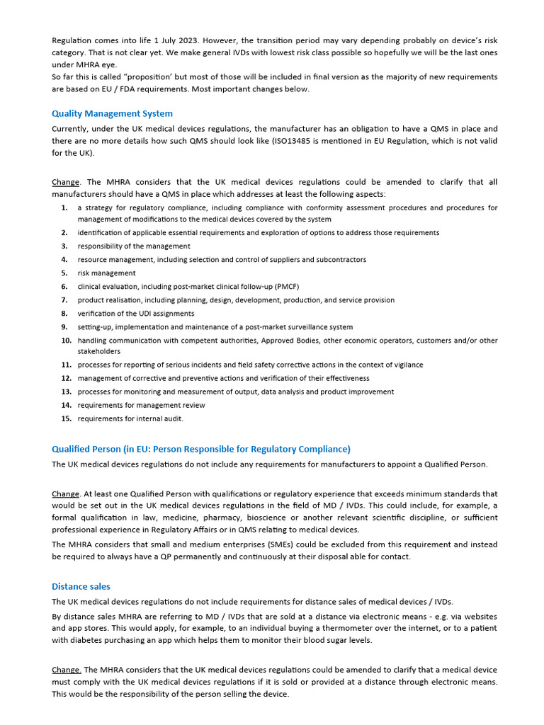 MHRA Reg 2023 PDF Medical Device Quality Management System