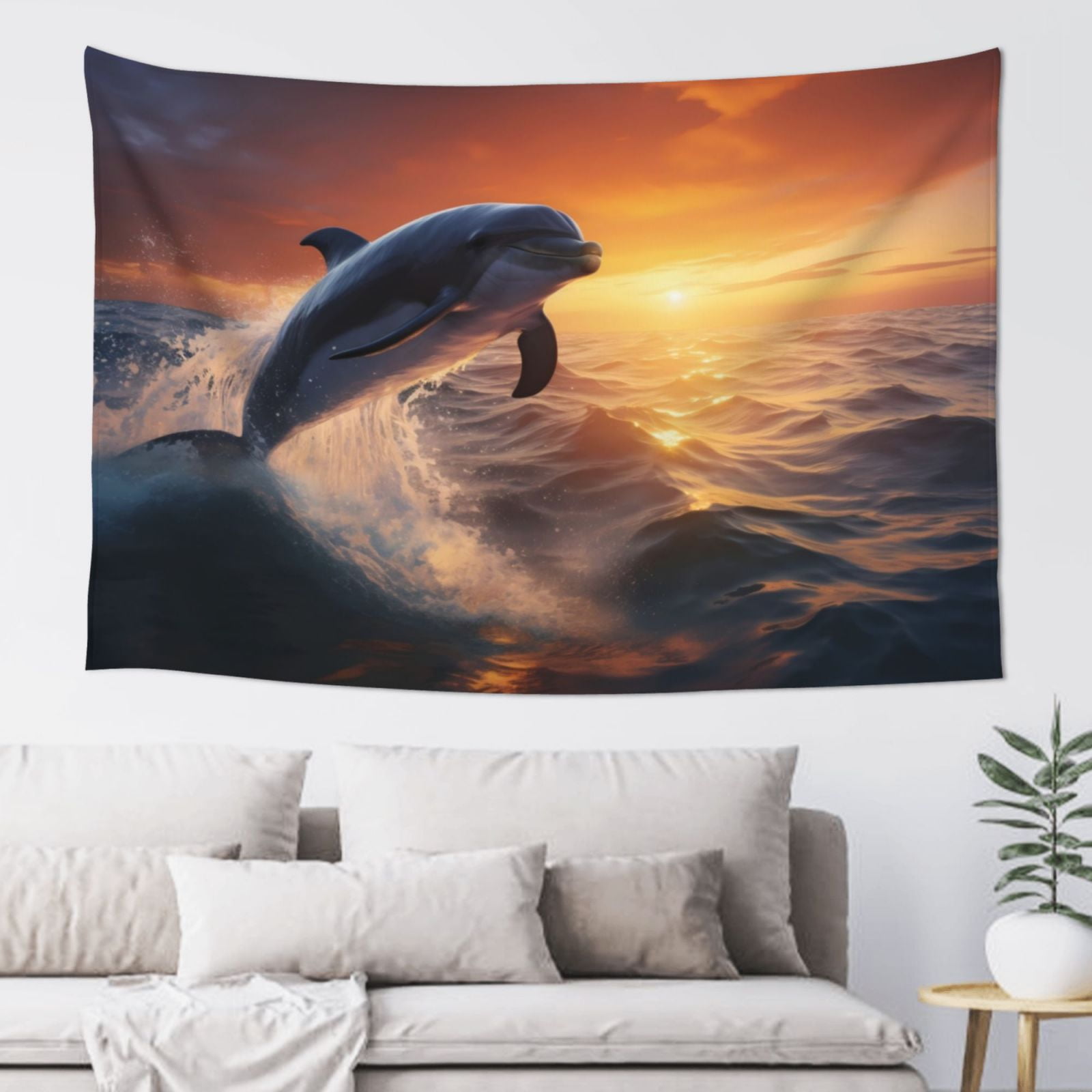 Adobk Sunset Dancing Dolphin Print Tapestry Wall Tapestry 60x40 Inch