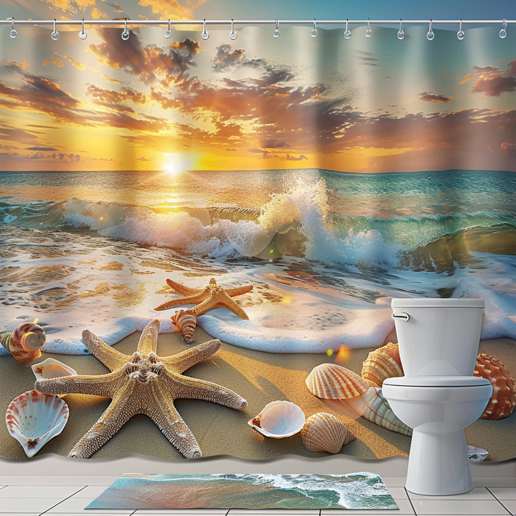 Hyper Realistic Beach Sunset Shower Curtain with Starfish and Shells Beach Sunset Shower Curtain Keppd beach sunset view shower curtain, extra long natural landscape bathtub decor shower curtain, thick polyester curtain with 12 hooks,. Sunset beach shower curtains are the perfect bathroom décor because they combine the two most beautiful natural wonders in the world,. The beach shower curtain use hd pattern designs. Lb beach shower curtain sunset scenery tropical island shower curtains for. Beach Sunset Shower Curtain.