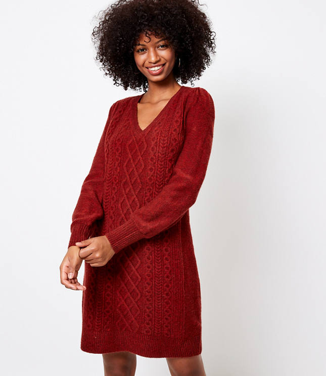 Tall Puff Sleeve Cable Sweater Dress