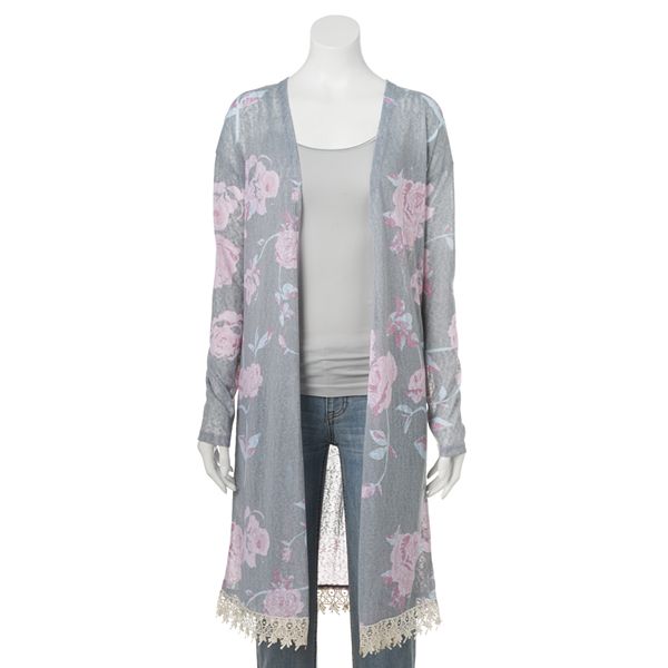 Freshman Floral Crochet Trim Kimono Cardigan Juniors