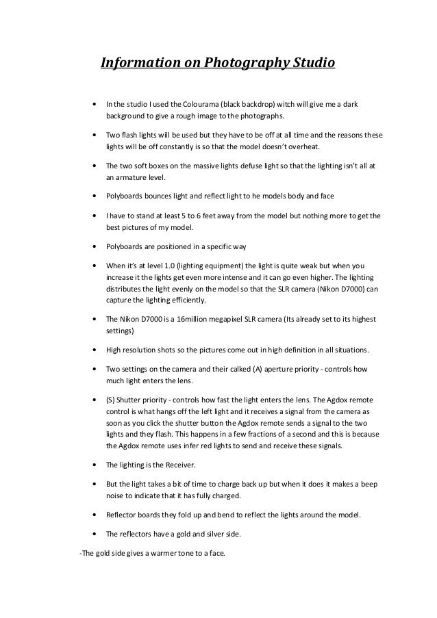Information on photography studio