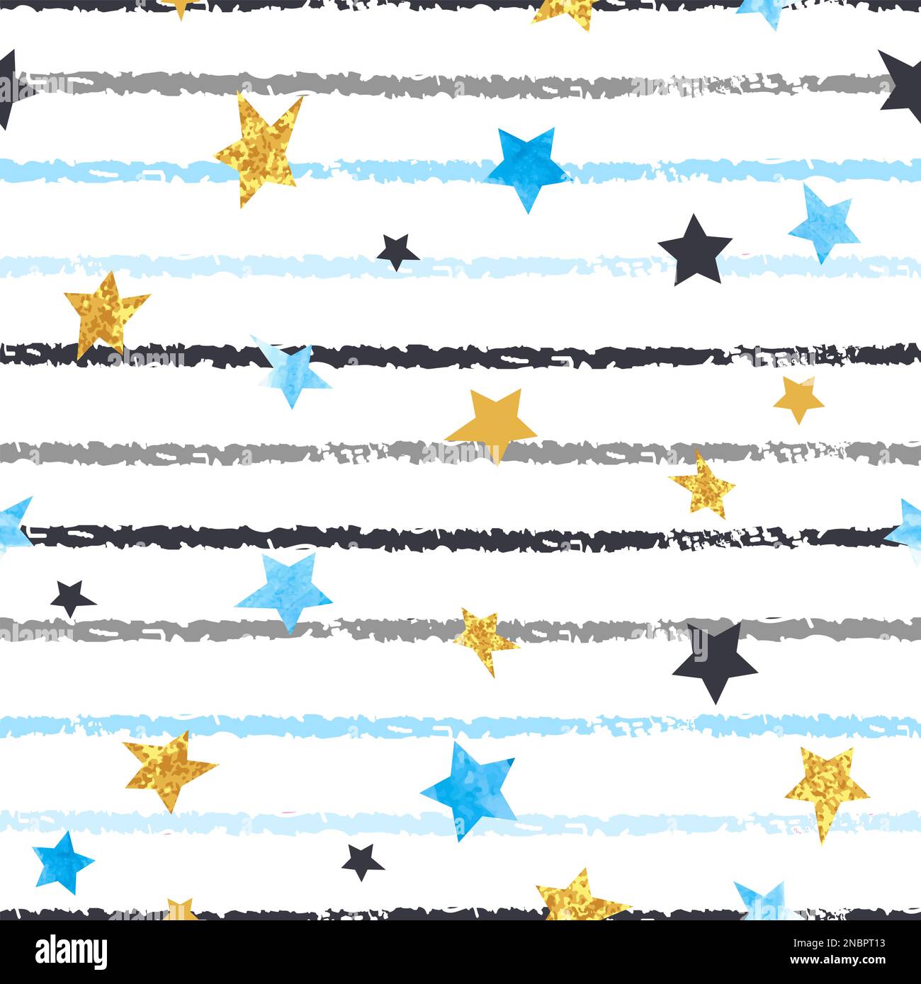 Seamless striped pattern with blue and golden stars. Vector background