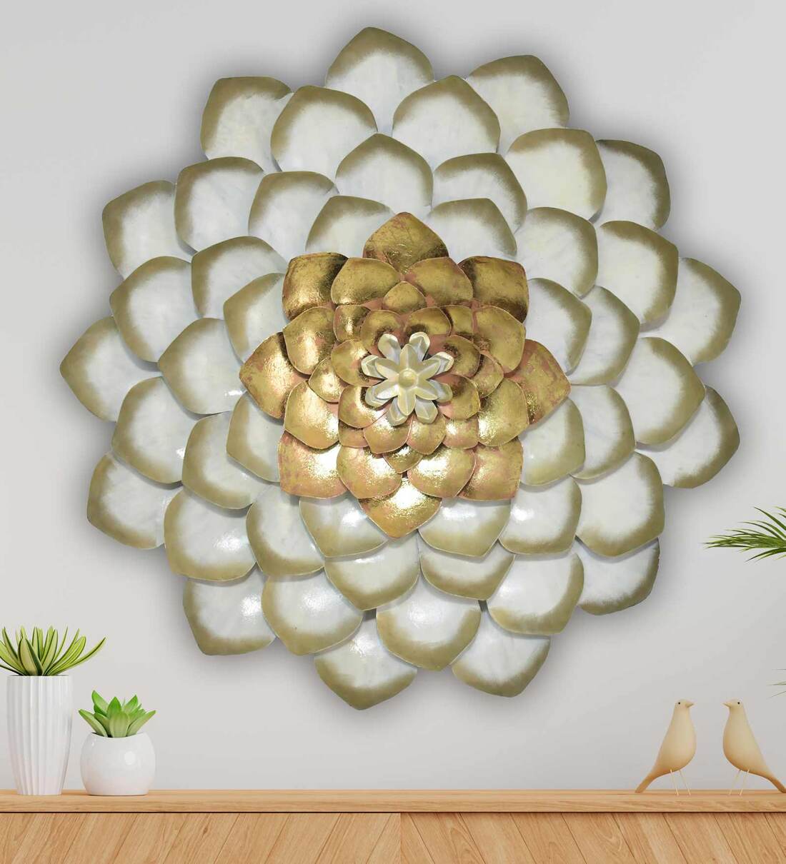 Buy Iron Large Dahlia White Gold Flower Wall Art at 30 OFF by Hanable