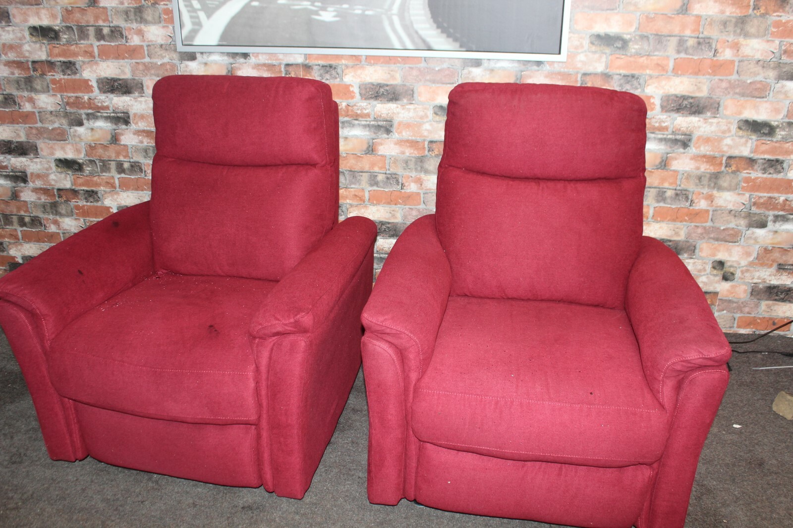 PAIR OF RED FABRIC ARMCHAIRS, ELECTRICS NOT WORKING eBay