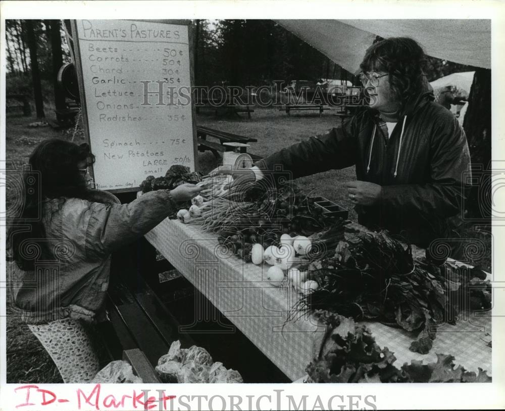 1993 Press Photo Jennifer Parent sells fresh produce at Coeur d'Alene