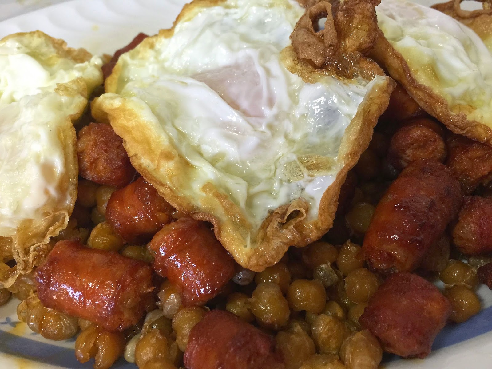 Garbanzos fritos con huevos y chistorra Bicheando en la cocina