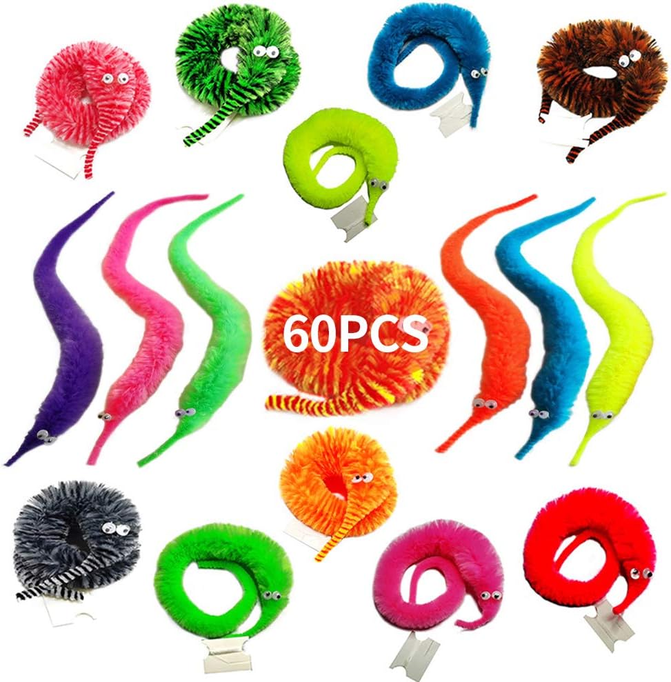 SHENGSEN 60 Pack Fuzzy Worm Toys String Pets Fuzzy Worms On