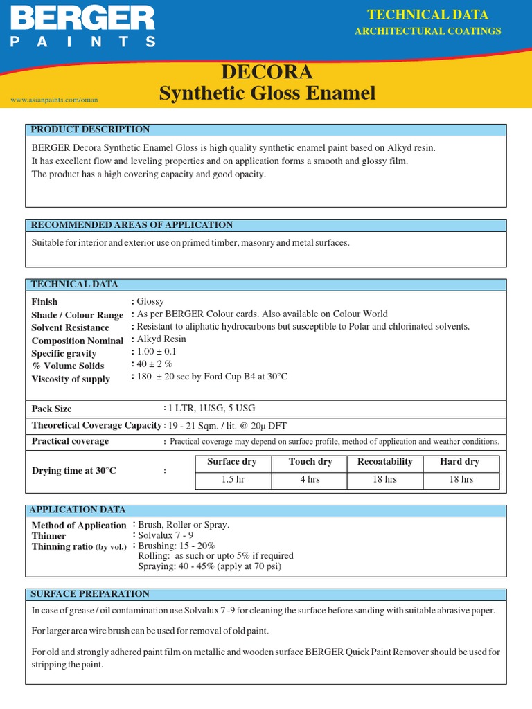 Decora Synthetic Gloss Enamel PDF Paint Manmade Materials