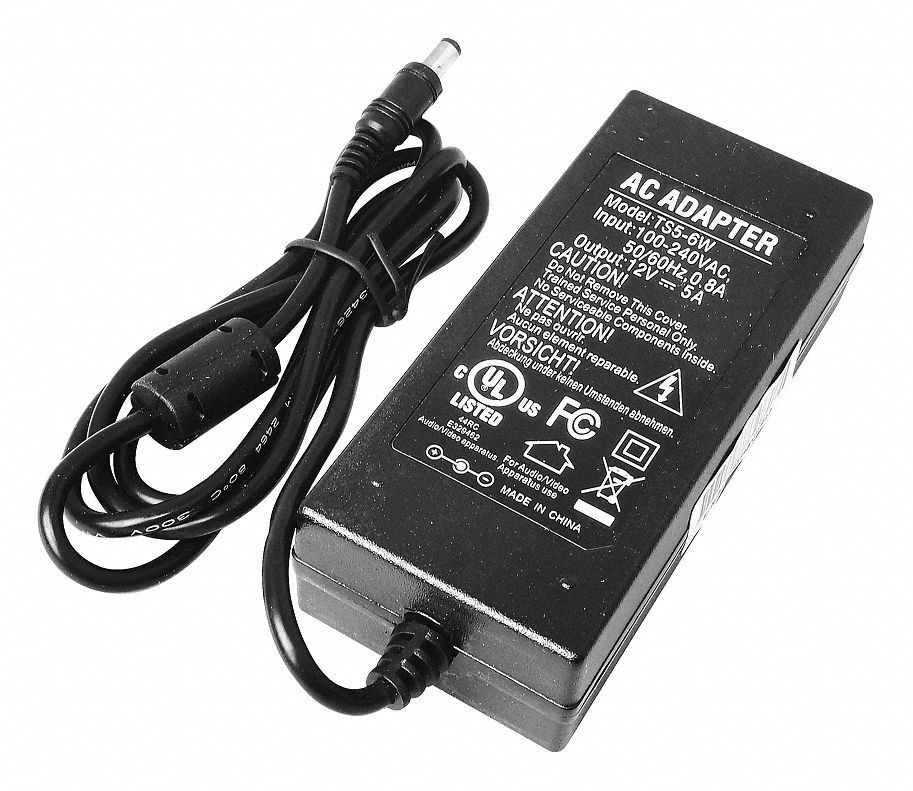 LTS Power Adapter, Plastic, 12VDC, UL Listed 48ZW83DVCPA5A Grainger