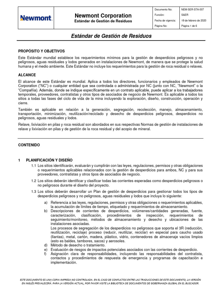 Waste Management Standard Spanish PDF Reciclaje Residuos