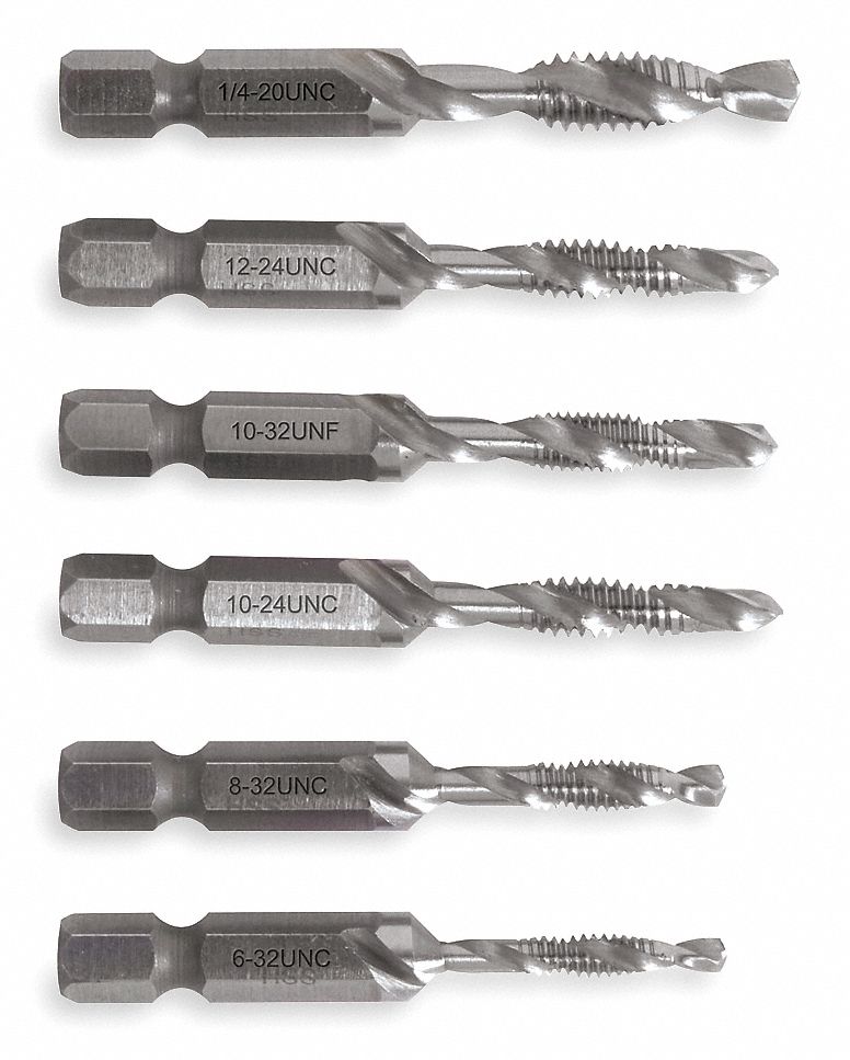 GREENLEE Combination Drill and Tap Set 6 Pieces, High Speed Steel, Bright (Uncoated), UNC Greenlee Drill And Tap Built to tap up to 10 gauge metal including steel, copper, brass,. Drill, tap, and deburr in a single operation with a power drill to save time and labor. Tap holes up to 4x faster than traditional methods. Complete hole drilling, tapping and deburring/countersinking in one operation using power drill to save time and labor. Combination drills, taps, and countersinks. Greenlee Drill And Tap.