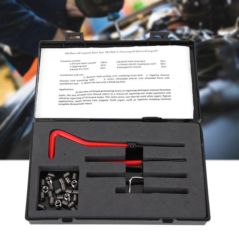 Buy 30Pcs M5x0.8 Thread Repair Kit Stainless Steel Twisted Drill Wrench Tap Insertion Tool at