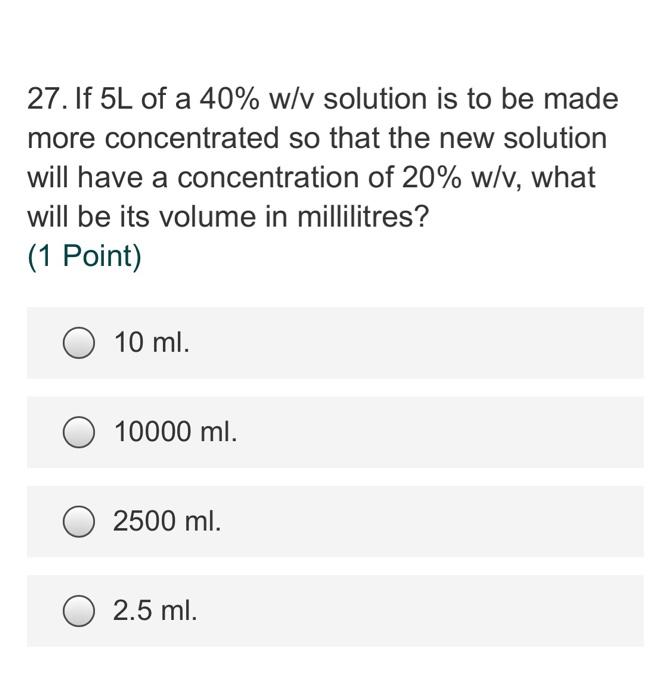 Solved 27. If 5L of a 40 w/v solution is to be made more