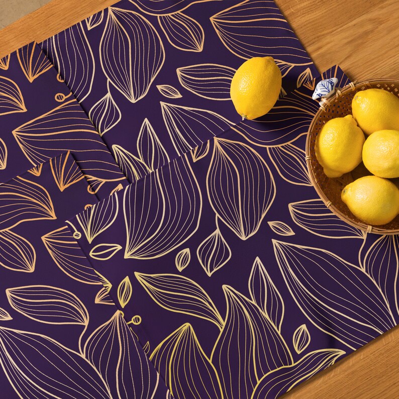 Dark Purple Floral Placemat Set of 4, Art Deco Table Decor, Water