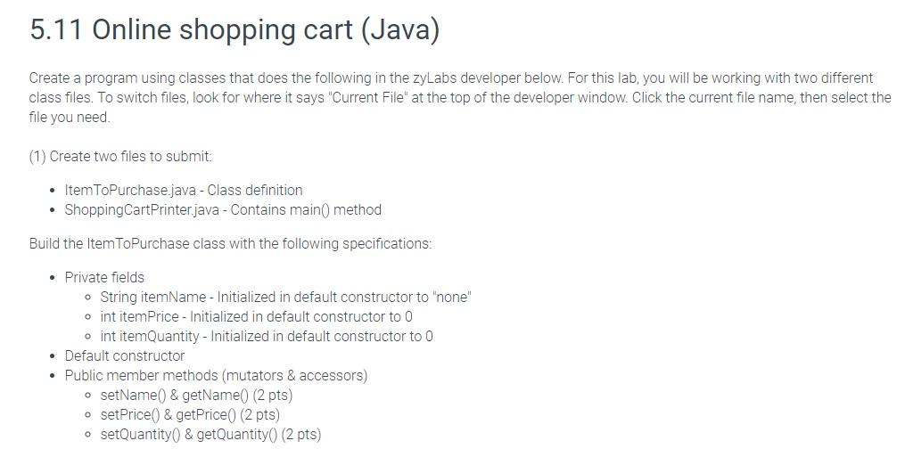 Solved 5.11 Online shopping cart (Java) Create a program