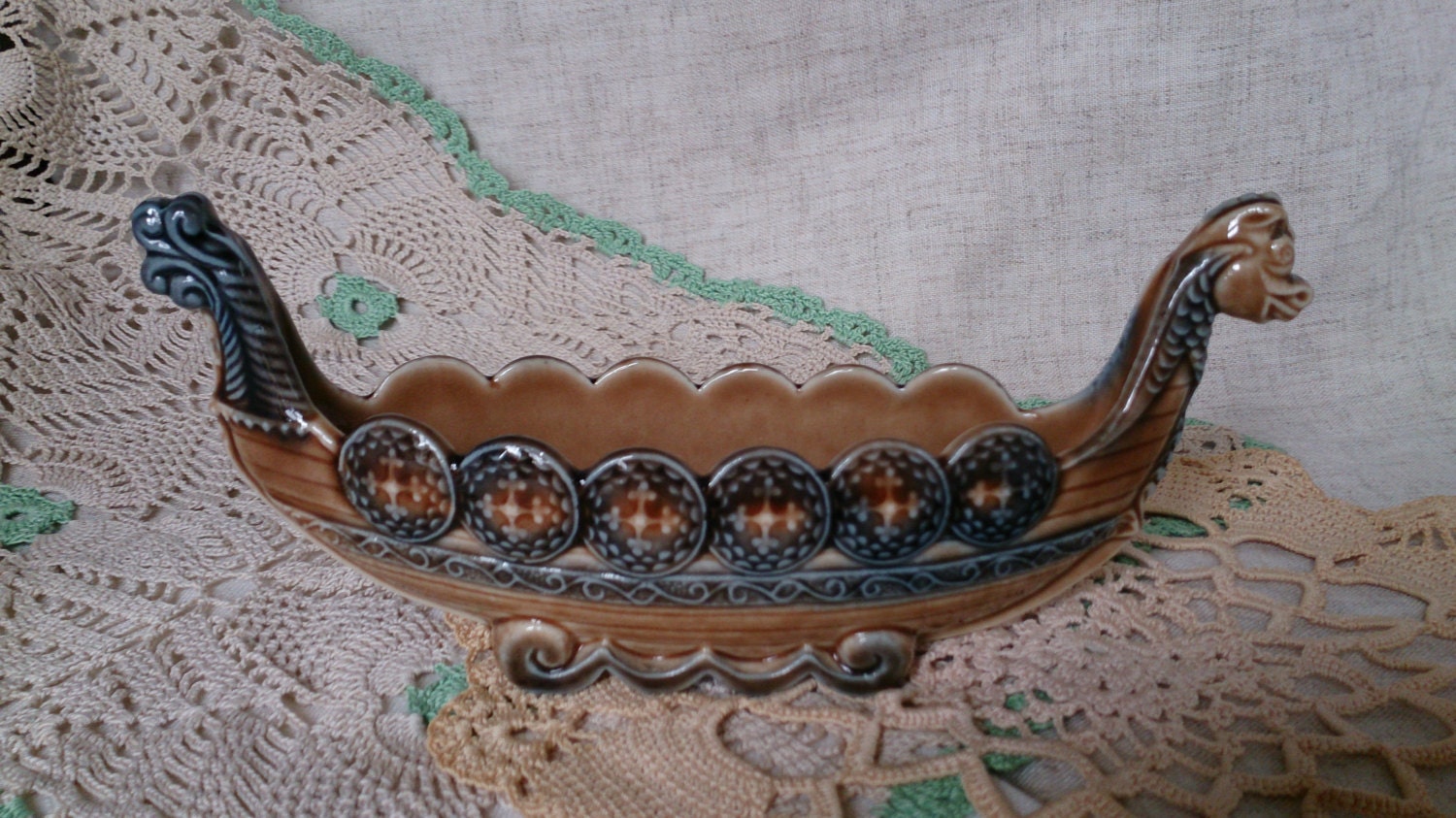 Awesome Viking Ship in porcelain by Wade England post war Etsy Wade Viking Ship For Sale Check out our wade viking ship selection for the very best in unique or custom, handmade pieces from our art & collectibles shops. Vtg wade porcelain viking ship figurine 7 long boat posey bowl vase brown/green Vintage wade porcelain viking dragon long boat ship 7½” made in england, great! This collectible porcelain item is nicely detailed and was made in.. Wade Viking Ship For Sale.